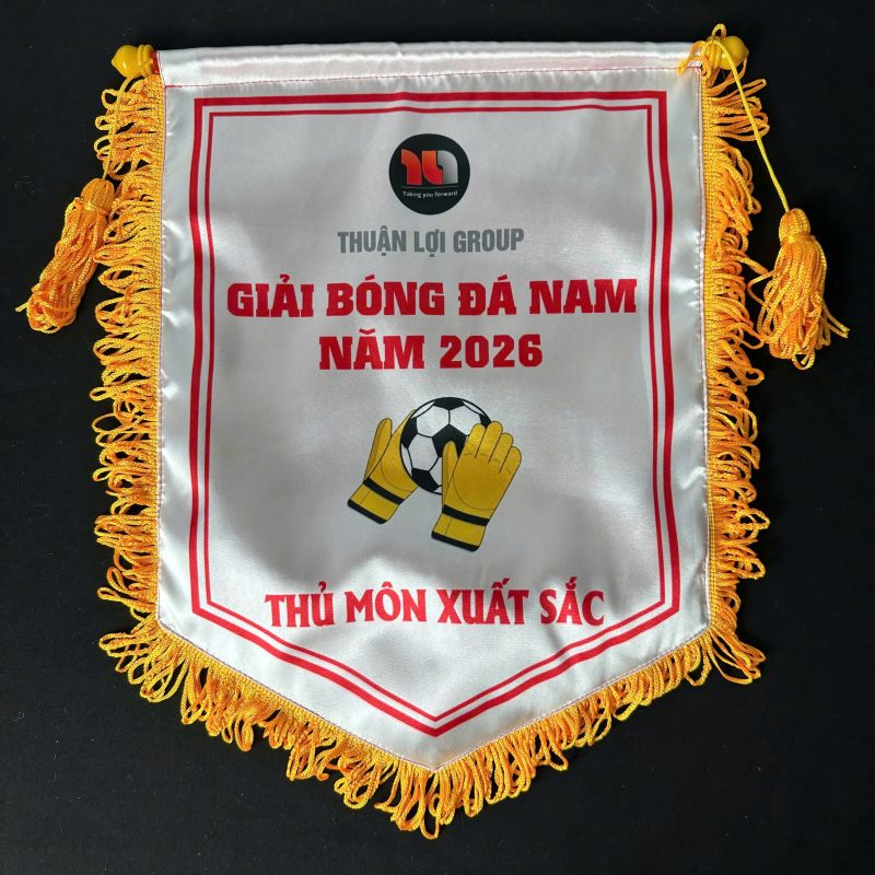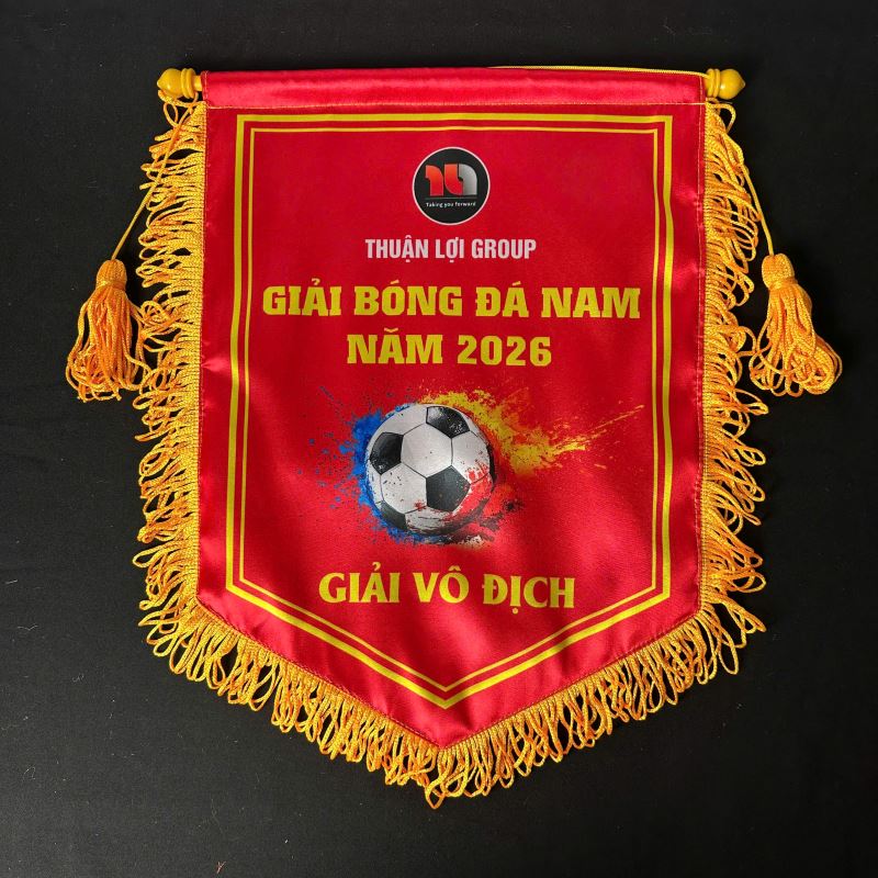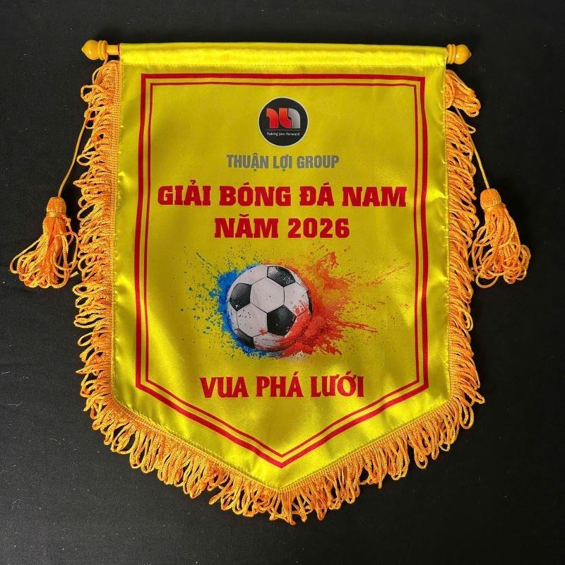Xưởng cờ Ngọc Thông chuyên sản xuất cờ giải bóng đá năm 2026, nhận in theo yêu cầu tên giải đấu, logo ban tổ chức, tên đội bóng, hạng mục thi đấu và mốc thời gian. Sản phẩm phù hợp làm cờ trao giải, cờ lưu niệm và trưng bày sau giải đấu.