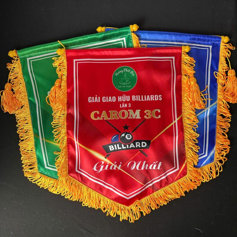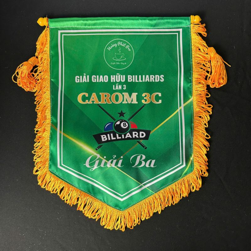Bên cạnh kỹ thuật thi đấu, phong cách tổ chức chuyên nghiệp cũng góp phần quan trọng tạo nên thành công cho giải đấu. Trong đó, cờ lưu niệm billiards là vật phẩm không thể thiếu, dùng để trao giải, kỷ niệm hoặc trưng bày. Cờ có thể in tên giải đấu, logo CLB, bảng xếp hạng, nội dung thi đấu bida, ngày tổ chức hoặc các thông điệp, khẩu hiệu truyền cảm hứng theo yêu cầu của khách hàng.